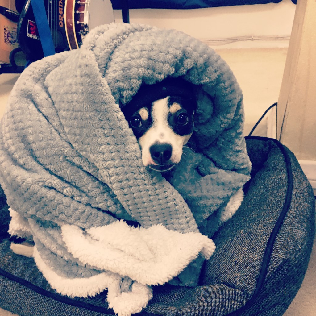 That’s Courage. He’s got PTSD and doesn’t do well around new people, so he stays at home with Mom on days with clients. We’re working on it, hopefully one day he’ll be down to hang out while we work. Until then, here’s a pic…
